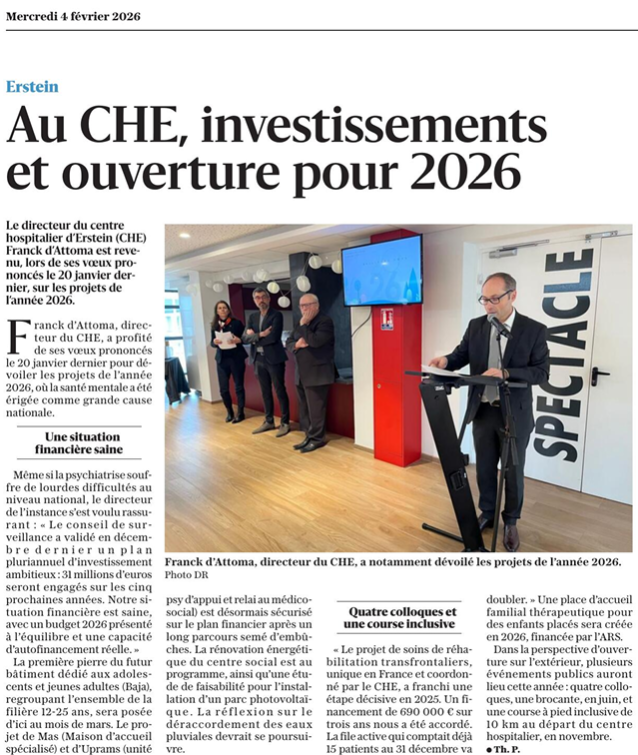 [LE CHE DANS LA PRESSE] Au CHE, investissements et ouverture pour 2026